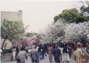現在構内にある桜は、関山、普賢象、松月、紅手毬、芝山、黄桜、楊貴妃など約120品種、約370本を数えていますが、大半は遅咲きの
