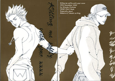 完売御礼 『In The Rain』(イベント限定小説本) 発行予定日 : 2003年11月3日(J GARDEN) 装丁 : A5。 28P(コピー)。 表紙一部メタリックフォト仕様。 価格はイベントでご覧あれ♪ 掲載作品 : 「In The Rain」乙姫静香 解説 : 「多分、それは、嘘。」の子規と尚也の番外編。ちょうど「多分、それは、嘘。」の直後の話になります。 コメディというよりは、どっちかというとロマンティック(ドラマティック)路線?(笑)濡れ場あり・・・かも、イベントでご確認ください(笑) イベント限定ってことで、売れ残ったら冬コミにも持って行こうかと(^^;)。通販はいたしません。 スキャンすると、表紙のメタル部分が綺麗に出なくてちょっと悲しい〜(TT)暗く淡くしすぎたかな〜? |