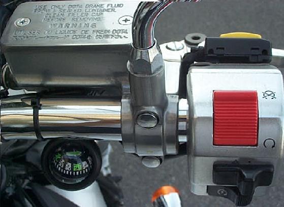 ハザードスイッチの反対側にヘッドライトスイッチがある。この位置に取りつけておけば、走行中でもかなりON、OFFし易い。