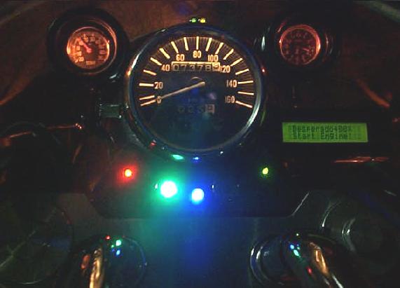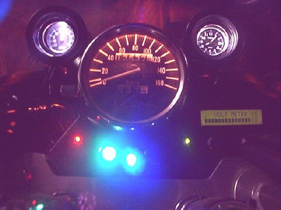 前はメーターの照明にムギ球を使用していたが、かなり暗くて見にくいため白色高輝度LEDに変更する。写真のようにたった20[ma]の電流で2800[mcd]の強烈な光を放つ。直視できない程明るい。