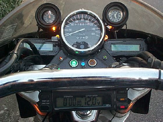 そしてスピードメータの上にはレーダー探知機の電源ランプと警告ランプが、またウインカーランプの右の方にはレーダー警報ブザーが付いてる。
