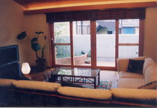 居間の天井は屋根に合わせて曲面とし柔らかさを表現しました。