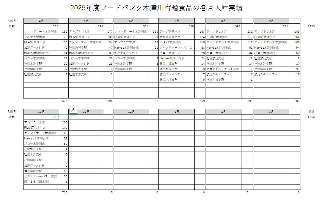 木津川市にはフードバンクの組織はなく、立ち上げに際しては多くの協力企業を探しましたが、当市には食品関連企業がほとんどなく、一部スーパーなどの地元企業に協力をいただいて運営しております。そのためフードドライブ活動がメインとなっており、一般の方々からの食品寄贈を中心に運用しております。