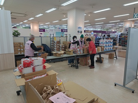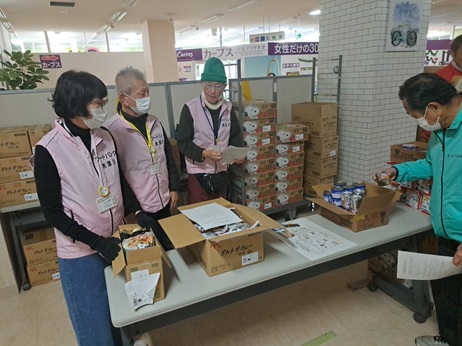アルプラザ木津2階の会場にて実施。フードバンク木津川から計5名の参加で支援を行いました。