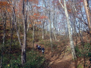 【蕪山】★11月6日に関市の蕪山に6人で登ってきました。 ★21世紀の森駐車場をスタート。 ★巨大な株杉を見ながら緩やかに登って大岩の横を通過。 ★涸れた谷に沿って登り、右山でトラバース。 ★尾根に出たところでスタンプをゲット。 ★左に蕪山の山頂を見ながら美しい紅葉のトンネルを歩きました。 ★東に向きを変えて前方に山頂を見ながらわずかにアップダウン。 ★廃道になった奥牧谷への分岐を通過して蕪山山頂に到着。 ★大展望の山頂でランチを楽しみました。 ★下山は、登ってきた道を戻り、途中から野鳥観察コースを下りました。 ★最高に美しい紅葉を見ながら、スタンプラリーに参加してきました。 |