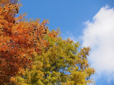 お天気がいいのでお弁当をもって長い植物公園へ行きました。紅葉はもうちょっと先のようですが、綺麗な所もありました。今日・明日は一般開放日で無料でした。