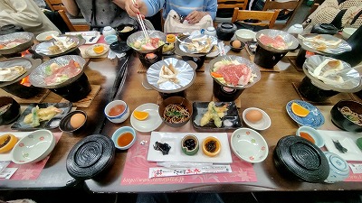 朝6時に出て到着は10時になります。到着が遅くなると駐車場がら入口が遠いので、今回は予約駐車を利用しました。ゲレンデ入り口の最前列に駐車出来ました。高齢者には良いシステムです。 車の割には空いていますね。ゲレンデに散るとこんなものなのか、寒いので皆さん休憩ですかね。リフト待ちが無くて良いのです。 さっそく高速リフトを2本乗り継いで山頂へ。良い雪ですね、気持ちが良いです。ただ、氷点下で寒いです。 α5000コースを通しで滑ると5000mになるロングランが出来ます。上部はパウダー、中間は締まったバーン、下部は緩めのバーンが楽しめます・・今ならね・・3月に入るとカリカリベタベタになってきます。 リフトも、待ち時間は無くてすぐに乗れます。途中、昼休みを取って宿に向かいます。 2時過ぎに切り上げ、宿に向かいます。めいほう〜高山へは「せせらぎ街道」が近道です、とは言え平湯温泉までは約2時間のドライブです。除雪が出来ているのでこのような雪道はほとんどありませんでした。私としてはちょっと残念です。 平湯の定宿・・と言っても2回目なのですが。「平田館」へ到着。 何と言ってもお料理の良さです。この後「アマゴの塩焼き」に温かい「とろろそば」が出てきました。もう食べきれません。飛騨牛の鉄板焼きで胃の老化を実感しました。飛騨牛は歯が要りませんでしたね、融ける。 夕食の後「平湯大滝結氷祭り」へ行きます。バスターミナルから「あんき屋(スキー場下のお土産屋)」へシャトルバスが出ています。(車も停められるので、車で行きました) このような緩い上り道が800m20分ほど続きます。 途中の橋のライトアップ。ここは電球色です。 滝に到着。凍っていますが、滝水は流れていました。 途中もきれいです。 途中の茶屋での振るまいは「たき火」と「甘酒・ぜんざい」です。 祭りの期間中、8時半から打ち上げ花火が毎日あります。星空も最高ですが、何せ寒いです。15分ぐらい打ち上っていました。 朝ごはんもこの量でした。素朴ですが量はいっぱい。この後豚汁とカレーが出てきました。ほうば味噌と温玉と豚汁で充分ですね。でも、つい完食しました。 温泉も入ったし、夕食に負けない朝食も食べたし、白川郷に向けて出発です。もうすぐ、ひな祭りであることを忘れていました。 夜に雪が少し降ったようです。この雪下ろしも普段雪に縁がないので楽しいですね。あ〜、車は寒冷地仕様車です。少しの価格で冬に便利・安心な装備が付きます。スキーに行く方にはお勧めです。(ワイパーモーター強化、バッテリー強化、フロントガラス熱線(デアイサー:ワイパーが凍っても溶かす熱線です)、後席暖房ダクトなど)。 1時間ほどで到着。10時でしたが「せせらぎ公園駐車場」はすでに満車。「みだしま農村公園駐車場」へ誘導されました。南側の端なので少し歩きますがこちらが正解かも。 「白川八幡神社」へお参り。スノーブーツだったのに、帰りにずっこけました。お賽銭も上げたのにどういう事?滑り台みたいでした。誰か、階段状に削ってくださいな。 続いて村内一周「和田家」も見学しましょう。2/10のテレビの「帰れマンデー見っけ隊」で出てきました。 ここは3階を覗いたところ。登れません。2階はここより広いです。外から見る屋根と傾斜が違って見えるのは何故でしょう? ますます雪がひどくなってきました。通行止めにならないうちに、そろそろ引き上げましょう。 お土産に「山味屋」さんの赤かぶをどっさり購入。今回は4種5袋。砂糖や甘味料を使っていない唯一(多分)の赤かぶ漬けです。甘いのはダメ。酸っぱいのが良いのです。最近のお漬物はほとんどに甘味料が入っているので美味しくありません。 高速までの間にホワイトアウトしかけました。この吹雪なのにライトを