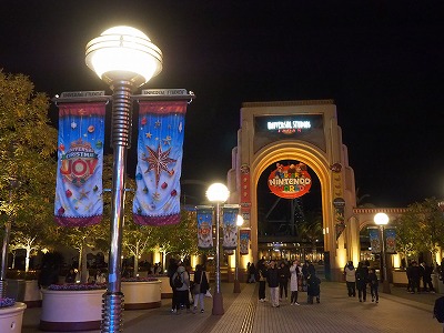 いつも賑やかです。9時前なんですが、もういっぱいの人。 朝は中華料理「ザ・ドラゴンズ・パール」出朝ごはん。比較的すいているレストランです。 ウォーター・ワールドの前説は今日も絶好調 いつもながらの迫力です。冬場は水にはまって寒くないのでしょうか・・えっ、寒いって・・ チャーリーブラウンがグリーティング ルーシーもいました 必ず乗る「エルモのゴーゴー・スケートボード」を楽しんで・・ 久々に「JAWS」に乗船。シングルライダーだと割と早く乗れました 「モンスター・ライブ・ロックンロール・ショー」は始めてです 「パワー・オブ・ポップ〜ワールド・ツアー〜」を楽しみます。世界で流行しているメドレーですね さあ、初めてのニンテンドー・ワールドへ行きます おー、すごい。完成度のすごさ。マリオの世界です ドンキーコングがいました。このリズム・・トランスしそうです カートは点検で休止中。今日はダメですね で、マリオ・カートへ行きます。クッパ大王は読書家でした。 サンバイザーと3Dゴーグルをつけて乗ります 出てくると、すっかり夜になっていました さらに美しく感じます そろそろ帰るとしましょう ここも夢の町でした。また来よう
