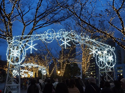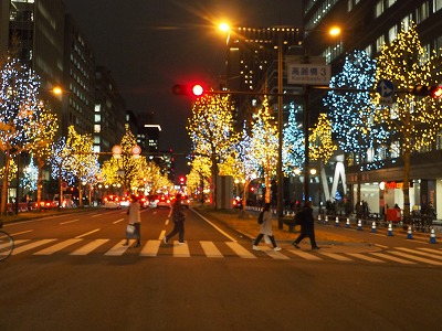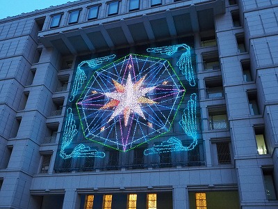 26日の夜中にATCに引越しとなるそうです。その後は千里の万博記念公園ですね。子ミャクの描かれたかれたサンタ袋を持っています。芸が細かい・・ 今年も大スクリーンが始まりました。スケスケのLED網ですが、よくできますね 次いで、中之島中央公会堂の方へ行きます。ここは毎年おなじみのイルミネーション。1回目はこの下とが倍ぐらいあった記憶があるのですが、見慣れるとけっこう空いています 中央公会堂のプリジェクション・マッピング。今年は3パターンでしょうか。虎が踊っているのとか色々ありました・・ 屋台もにぎわっています。年ねん賑やかになっているのと、メニューが今っぽいのが増えました 続いて「梅檀木橋」をぬけて淀屋橋へ。イルミネーション会場は入口からは一方通行なのです。 イルミネーションは梅田の吸気塔から難波高島屋前まで続いています。始まった頃は淀屋橋からだったと思います エリアごとに梅田側から「ブルーxホワイト」「パープルxゴールド」(淀屋橋)「ホワイトxゴールド」「ゴールドxミックス」「ミックス」(心斎橋)「5色ミックスxホワイト」と変化します。